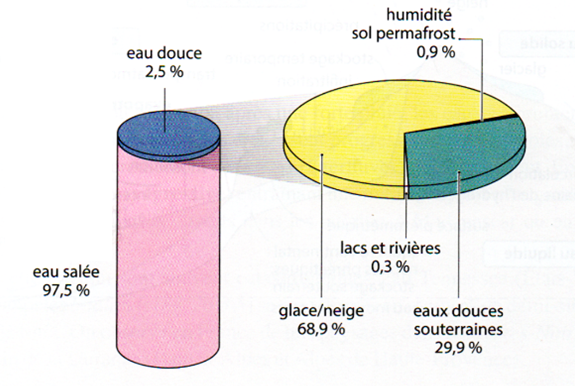 - Figure : répartition de l'eau sur Terre. DR.