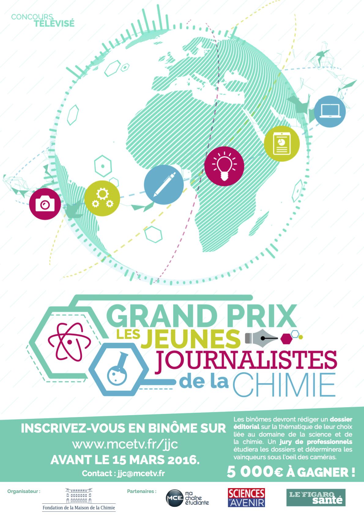 Le Grand Prix : les jeunes journalistes de la chimie est un nouveau concours étudiant télévisé destiné aux futurs journalistes et organisé par la Fondation de la Maison de la Chimie en partenariat avec les journaux Sciences et Avenir et Le Figaro.