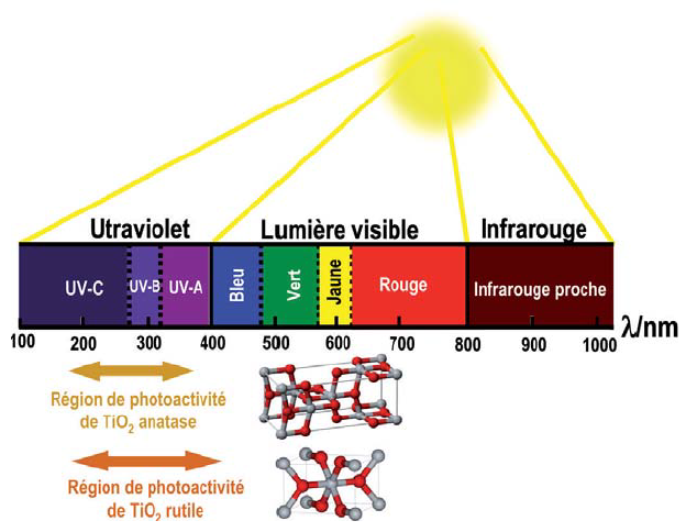 photocatalyse, dioxyde de titane, semi-conducteur, dépollution, désinfection, photochimie, environnement