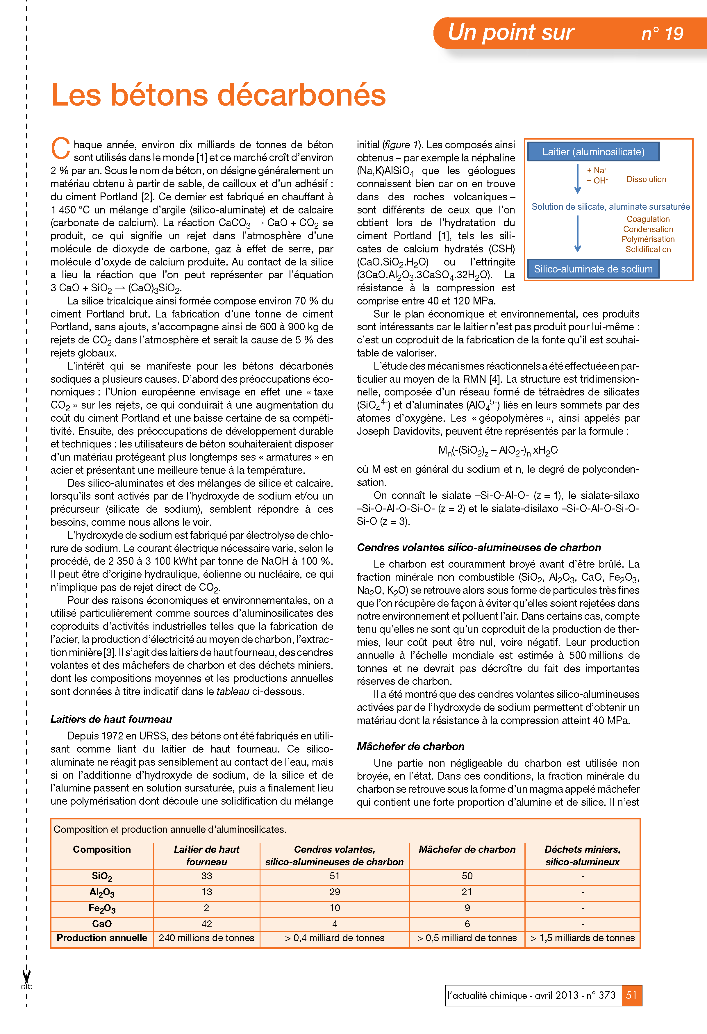 bétons, décarbonés sodiques, aluminosilicates, laitiers de haut fourneau, cendres volantes, mâchefer, déchets miniers