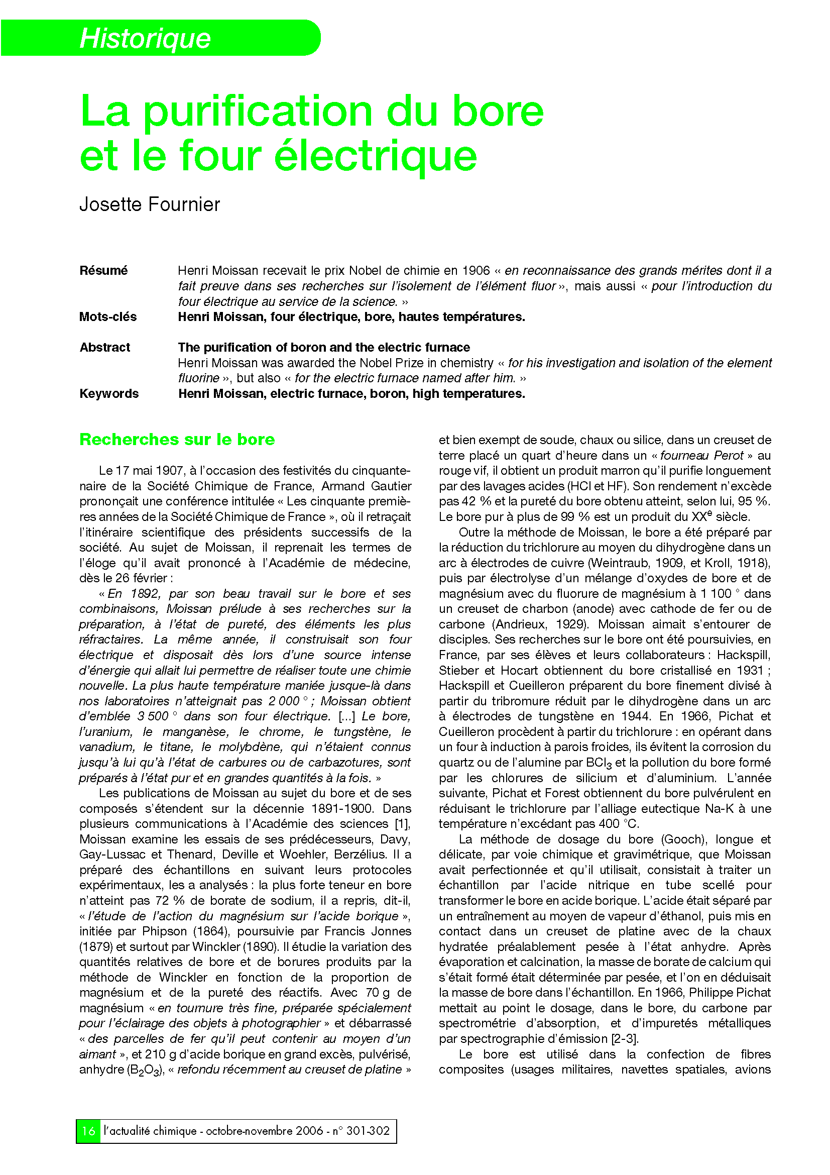 Henri Moissan (1852-1907), bore, réducteur, four électrique Moissan, hautes températures, prix Nobel