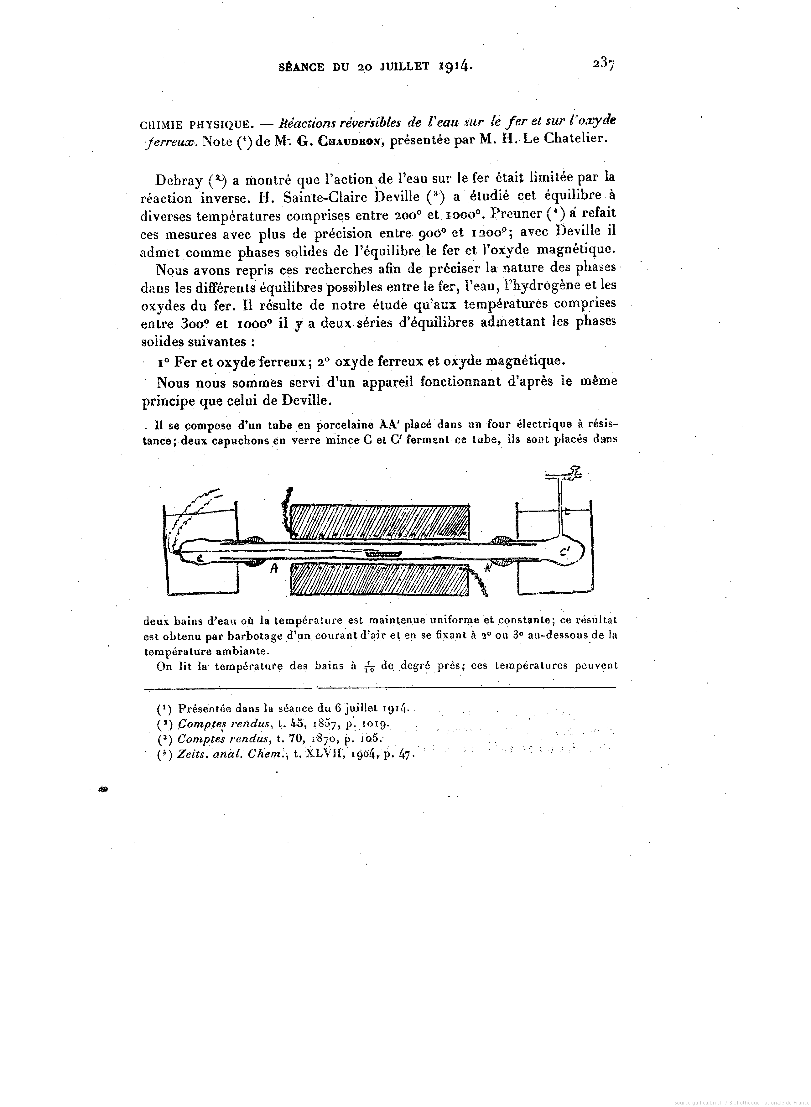 fer, eau, oxyde ferreux, oxyde ferrique, phases solides, équilibre, Chaudron