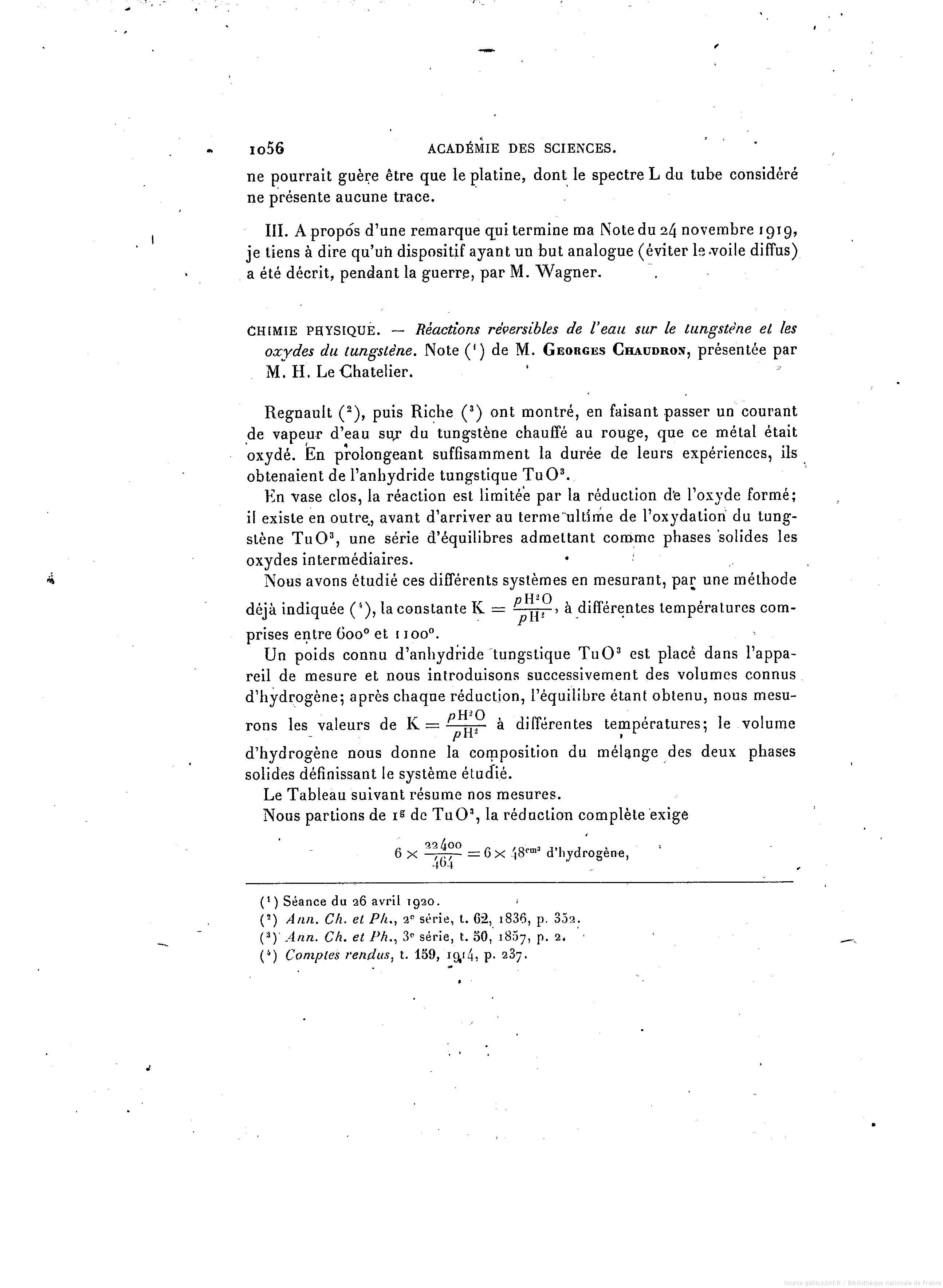tungstène, oxydes de tungstène, chaleur de réaction, équilibre chimique, Chaudron
