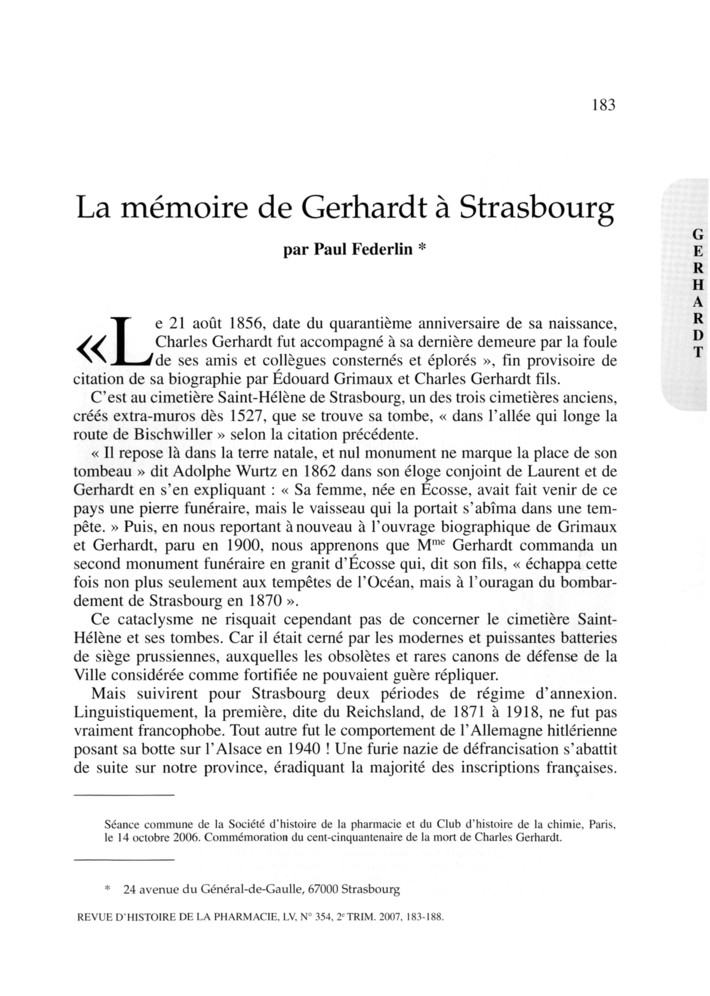 Gerhardt, Strasbourg, commémorations
