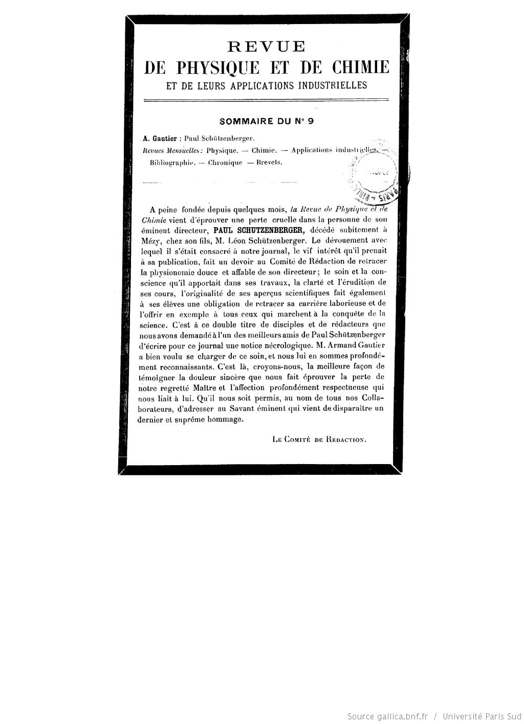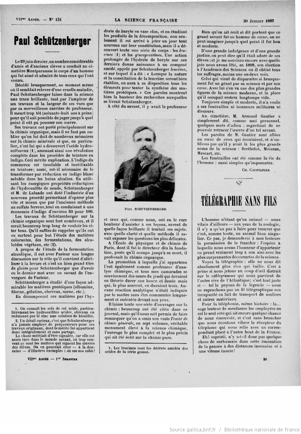 Schutzenberger, Gautier, école professionnelle de Mulhouse, Collège de France, école municipale de physique et de chimie de la ville de Paris, acide hydrosulfureux, substances albuminoïdes
