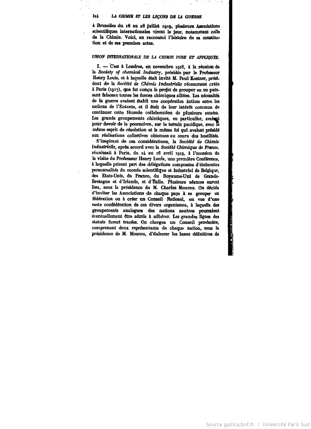 conseil international de recherches, association internationale des sociétés chimiques, union internationale de chimie pure et appliquée (IUPAC), Moureu