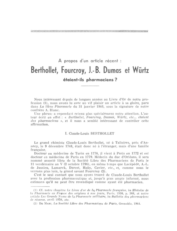 Berthollet, Fourcroy, Dumas, Wurtz, pharmacien, Société libre des pharmaciens de Paris, Société de pharmacie de Paris
