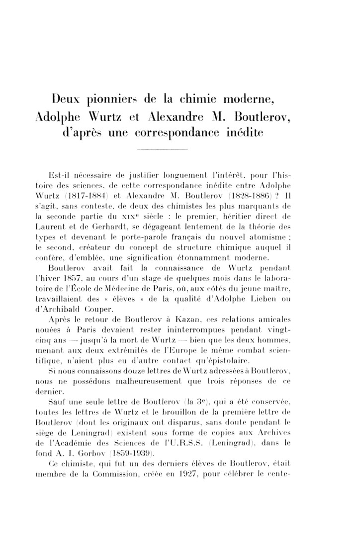 Wurtz, Boutlerov, Société chimique de Paris, bulletin de la société chimique, Académie des sciences de Saint-Petersbourg