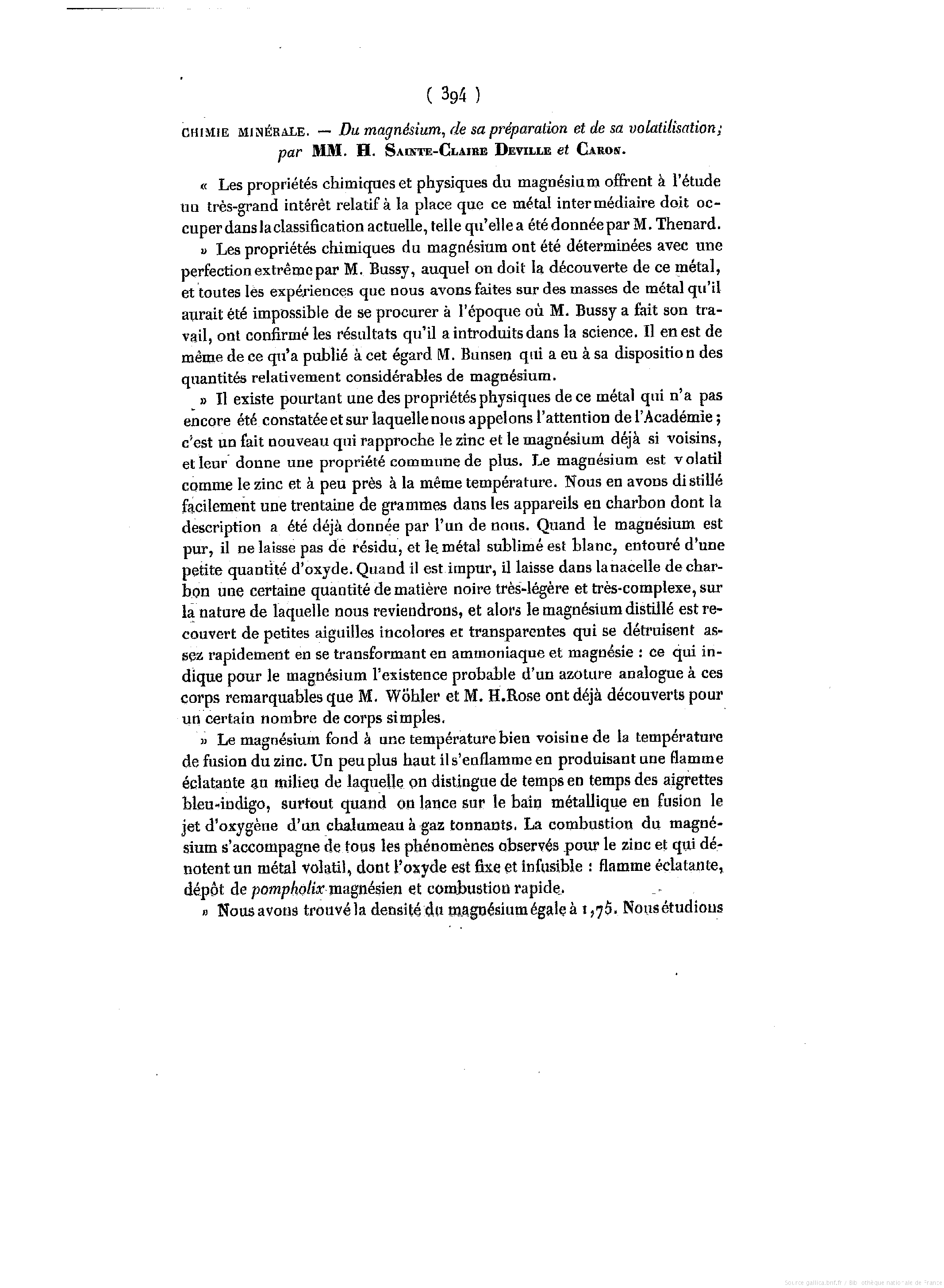 magnésium, zinc, chlorure de magnésium, sodium, creuset de terre