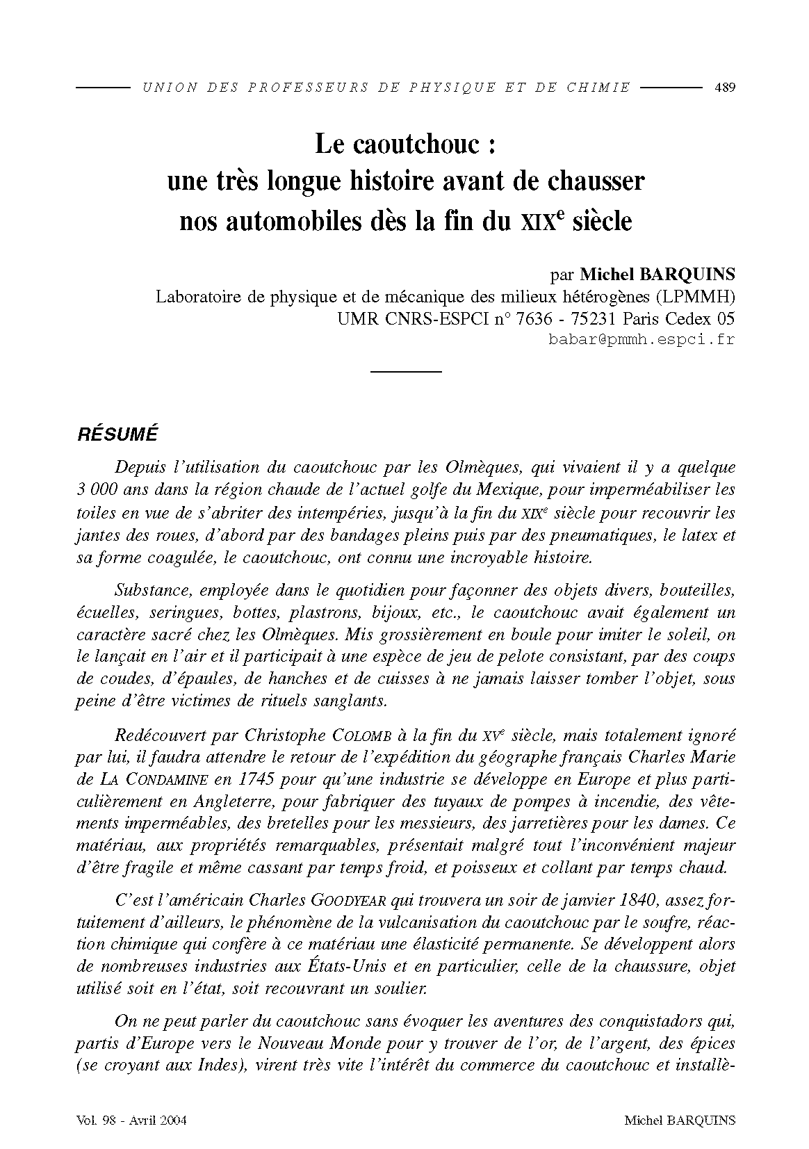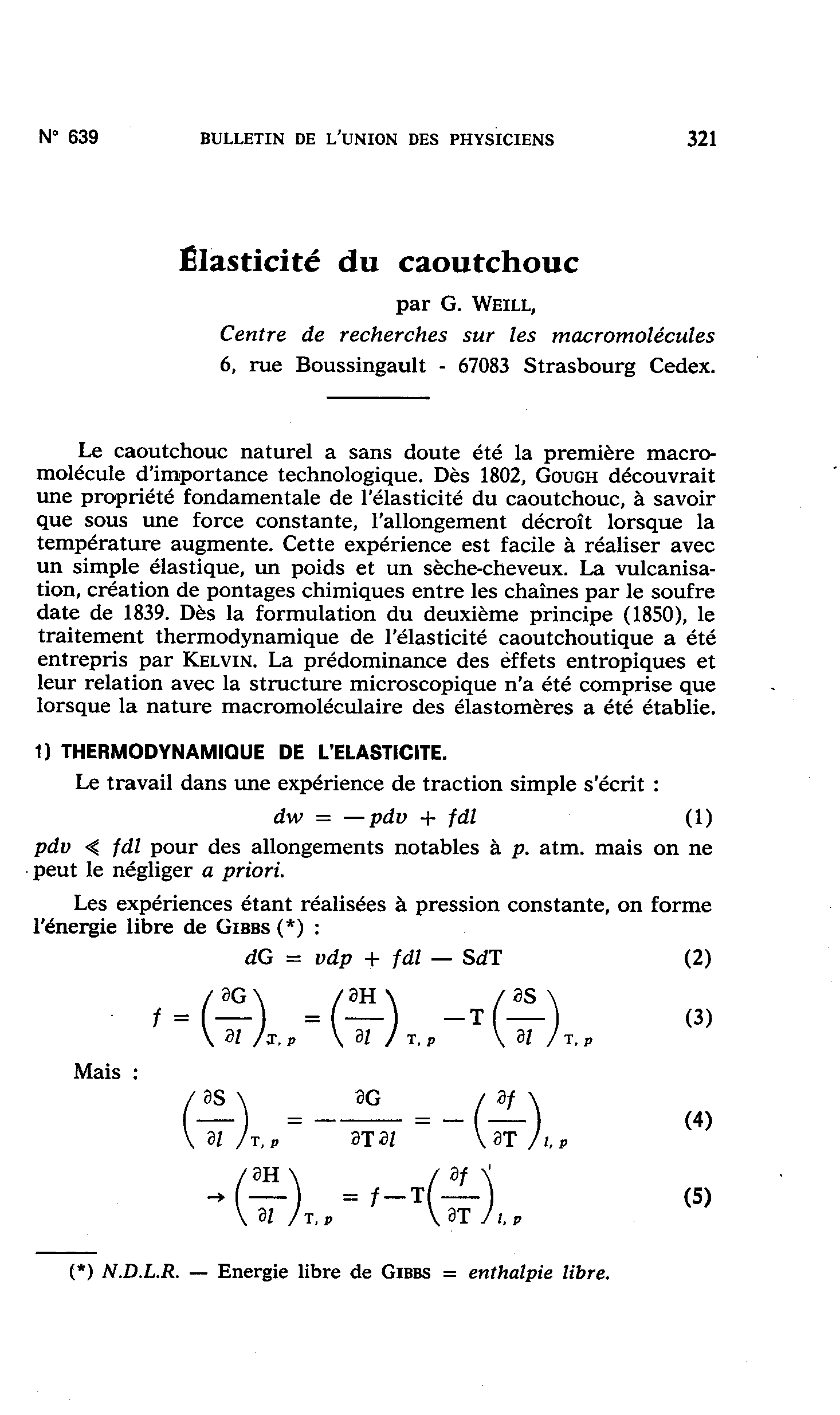 caoutchouc, polymère, élasticité, entropie, enthalpie