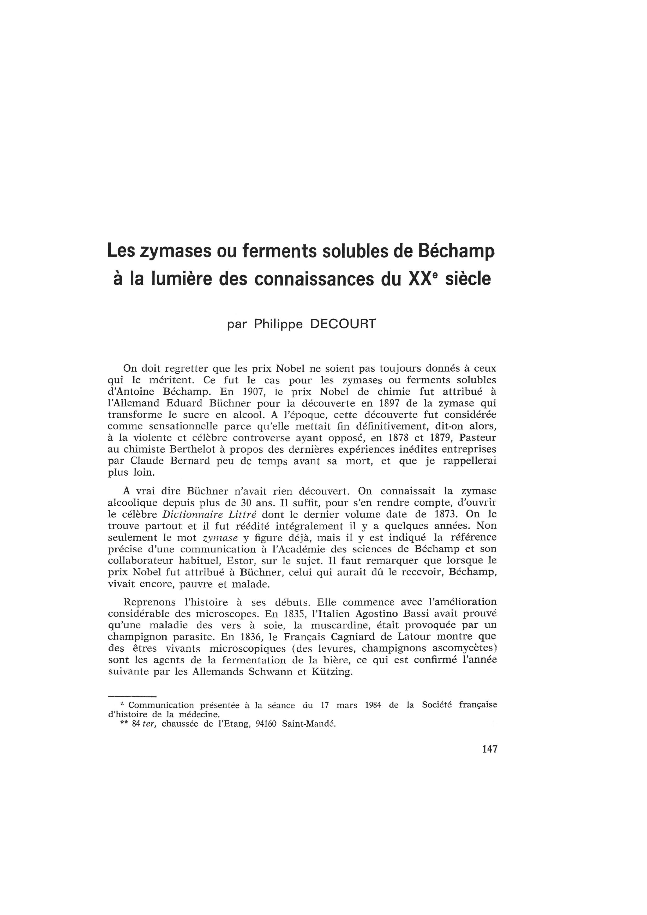 fermentations, enzyme, zymase, Béchamp, Pasteur, Berthelot, Claude Bernard, Eduard Buchner