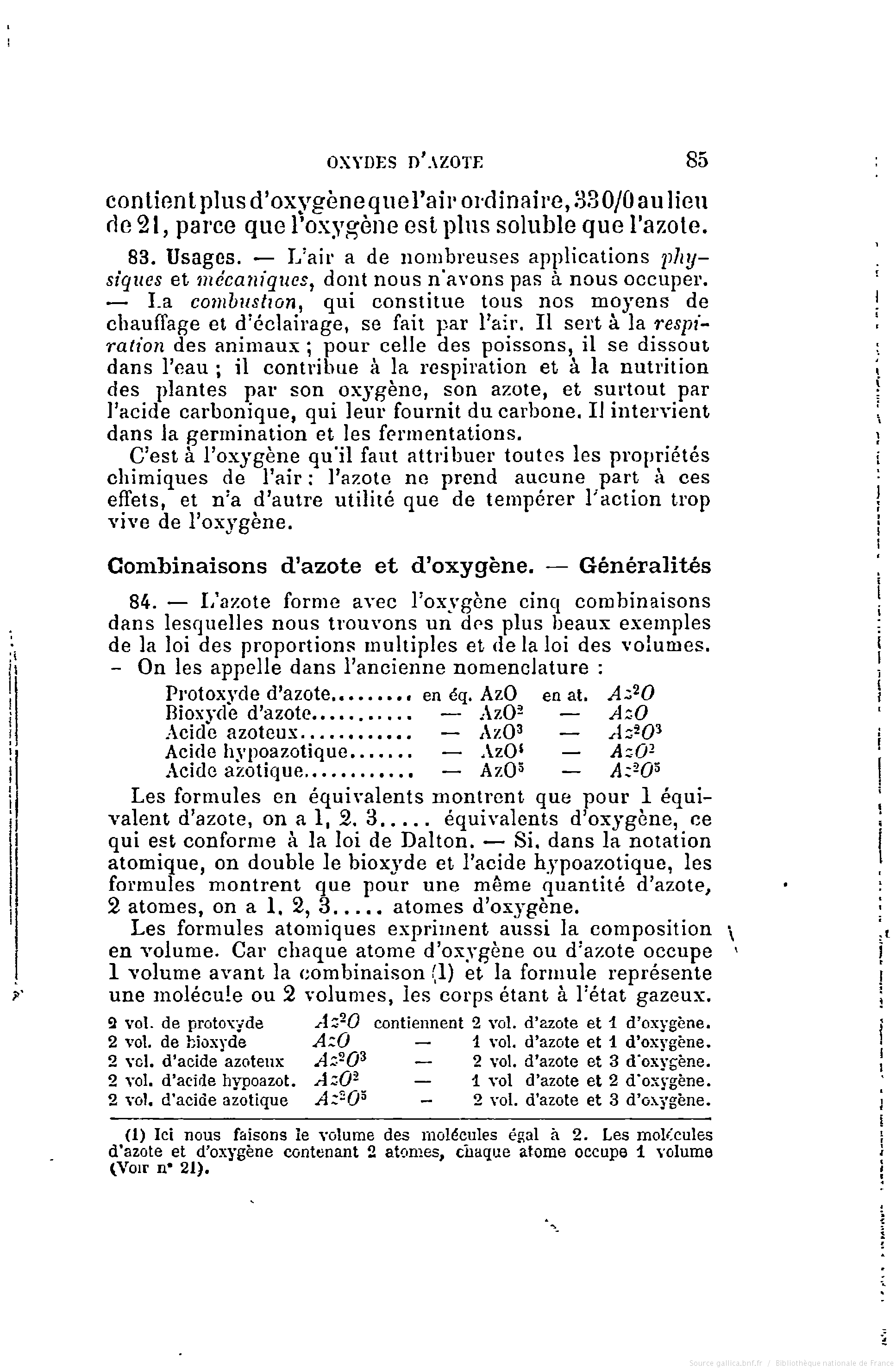 protoxyde d’azote, bioxyde d’azote, anhydride azotique, acide azotique, Priestley, Davy, Berthollet, notation atomique, équivalent