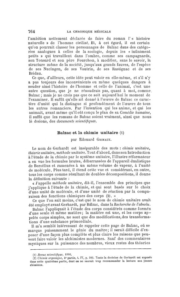 théorie unitaire, Charles Gerhardt (1816-1856), Honoré de Balzac (1799-1850)