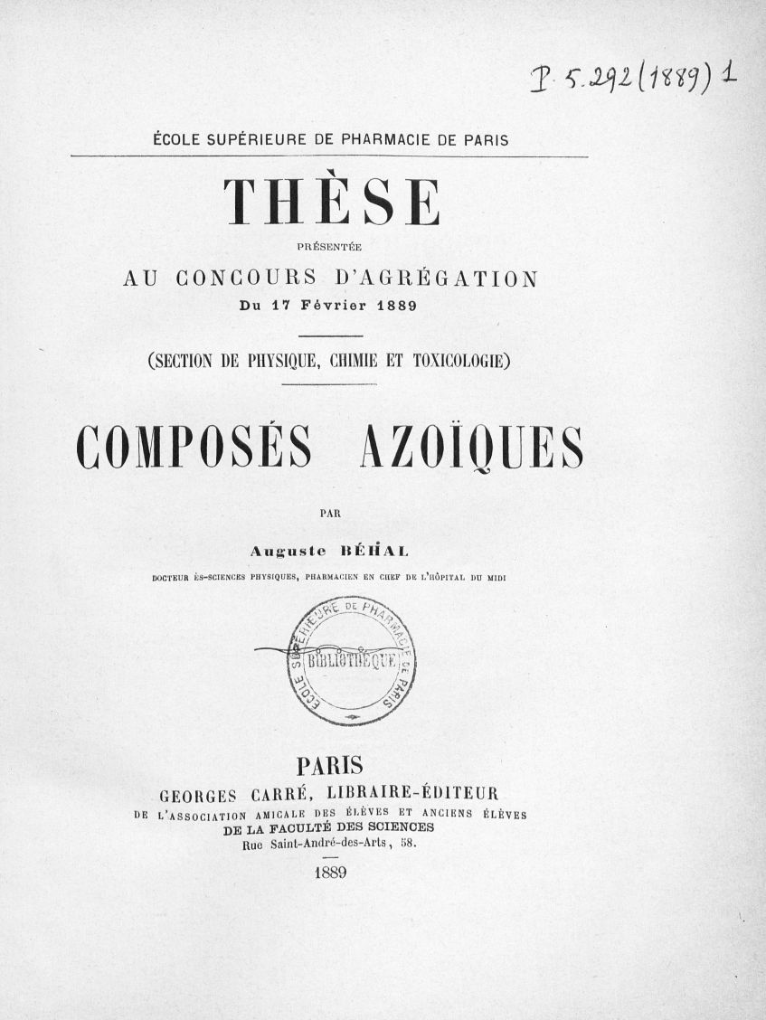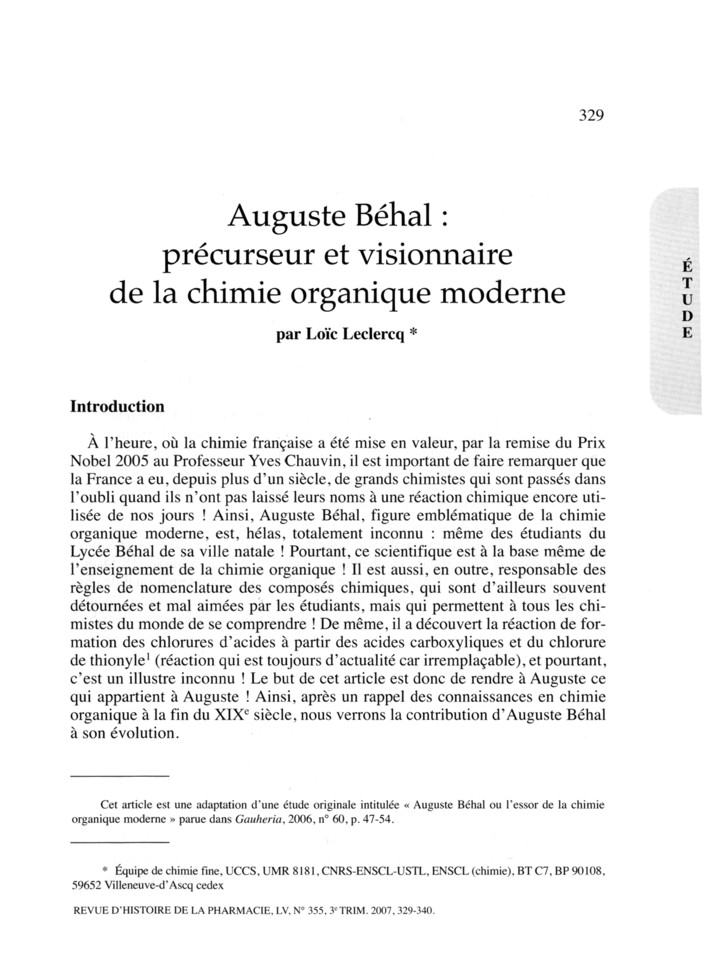 Béhal, chimie organique, nomenclature, théorie atomique, mécanismes réactionnels, rétrosynthèse