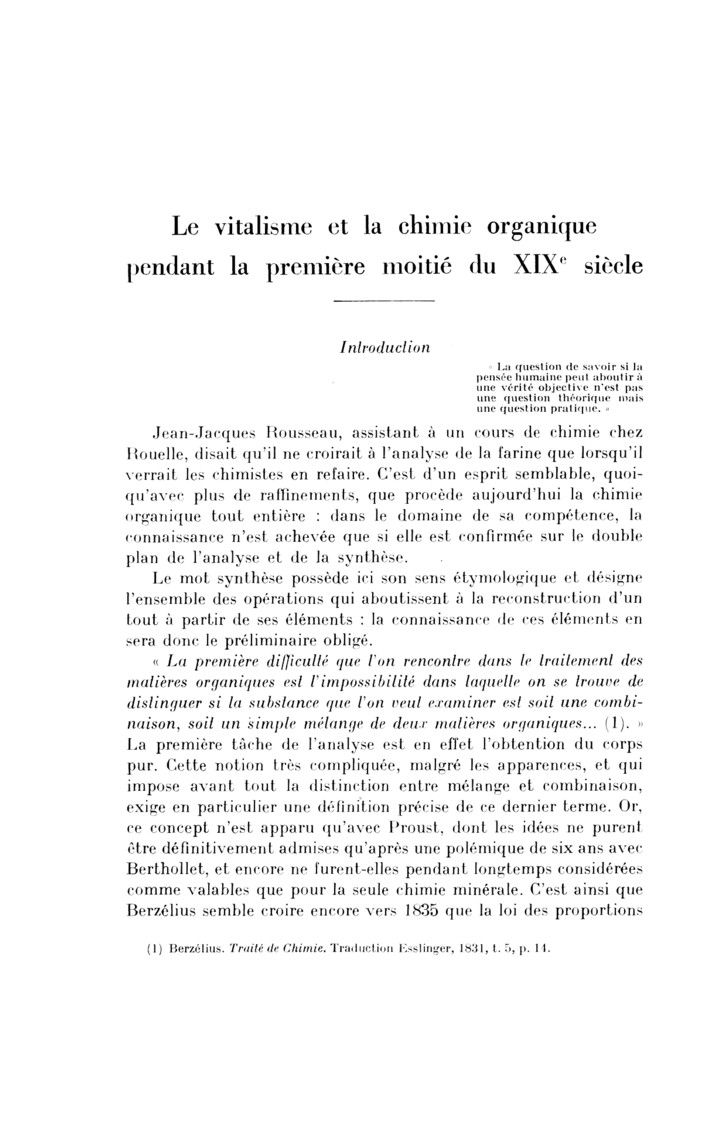 force vitale, synthèse organique, loi de Proust, bibliographie