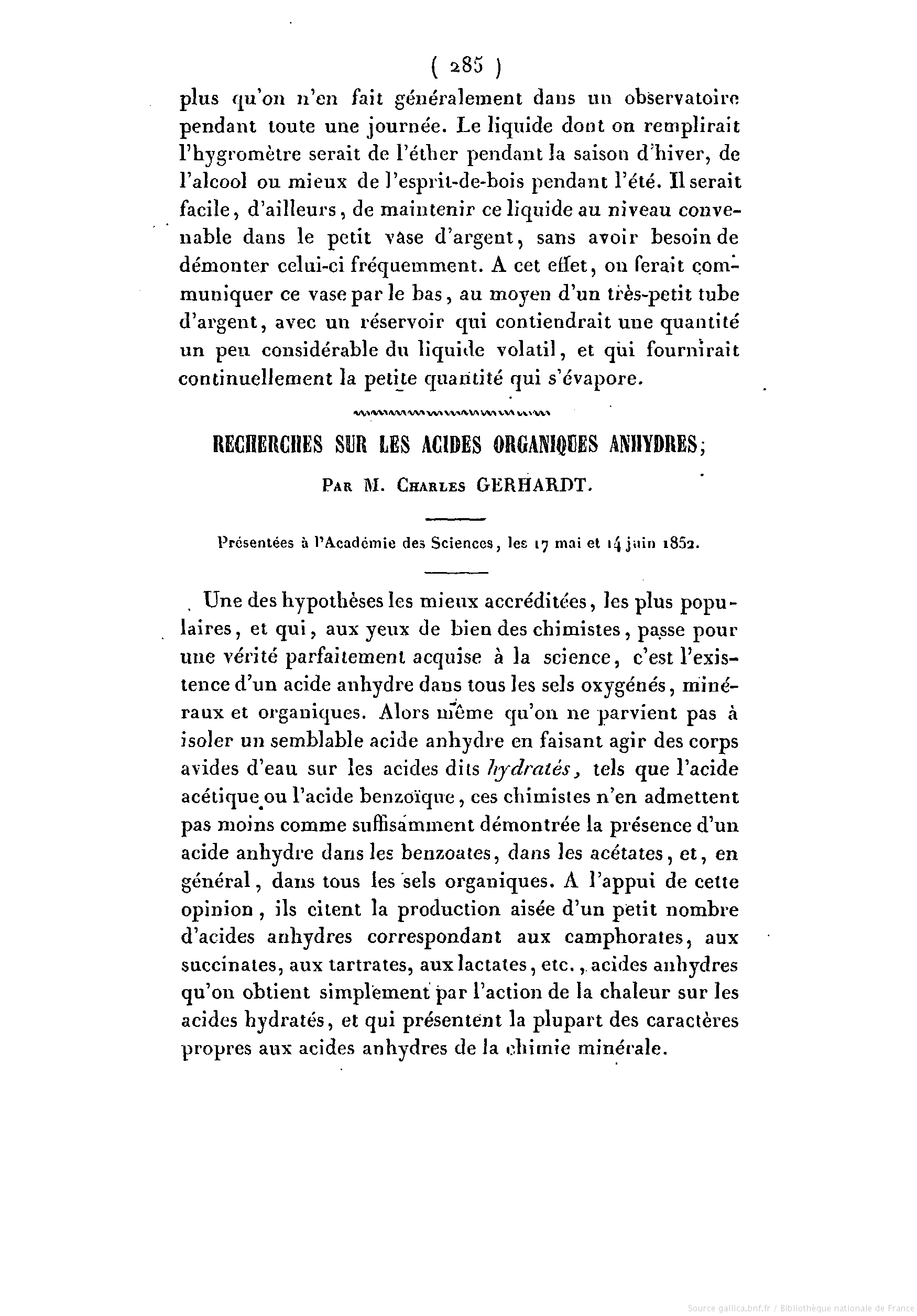 anhydrides d’acides, acide acétylsalicylique, aspirine, Gerhardt