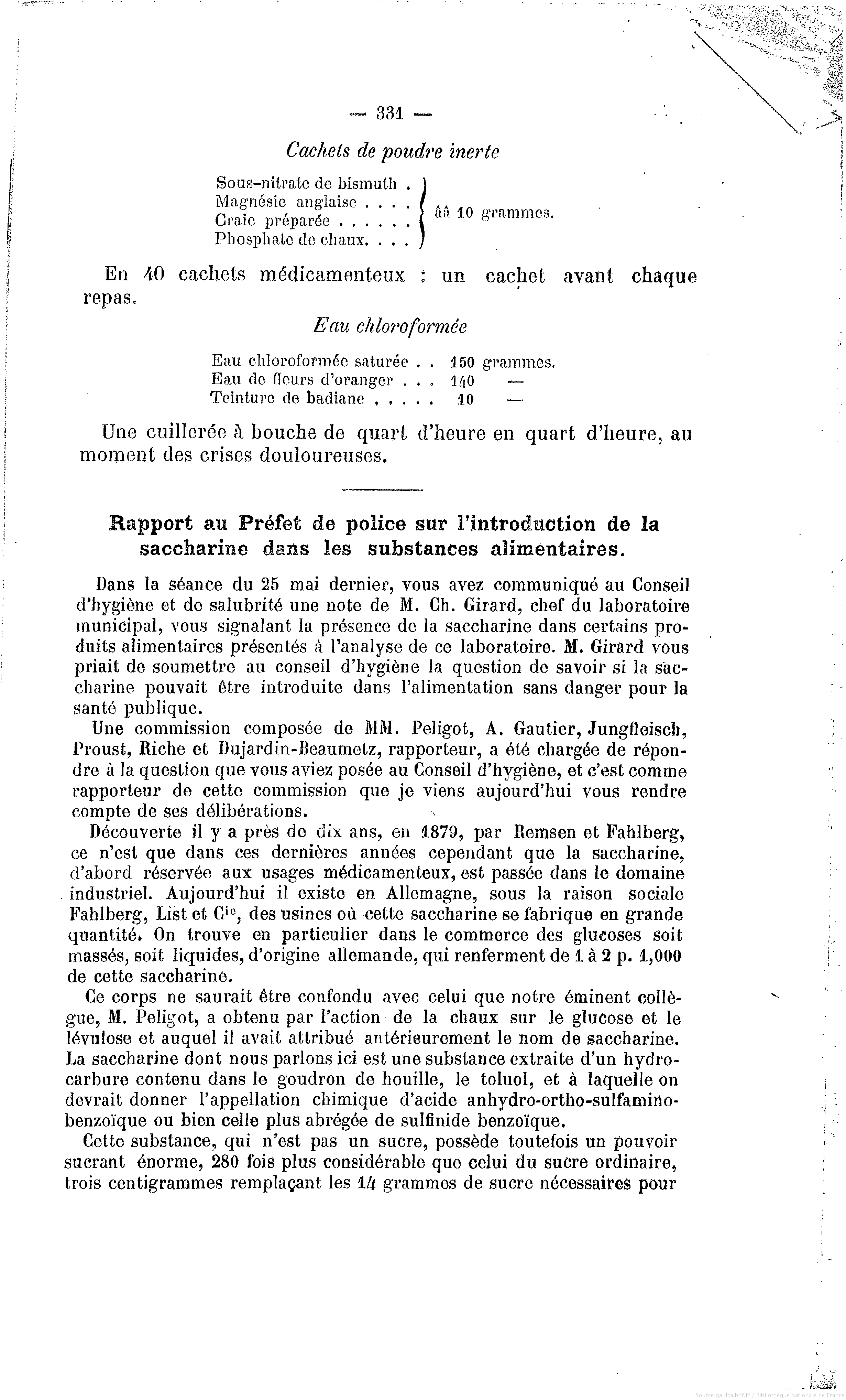 saccharine, pouvoir sucrant, pouvoir édulcorant, conseil d’hygiène et de salubrité, falsifications