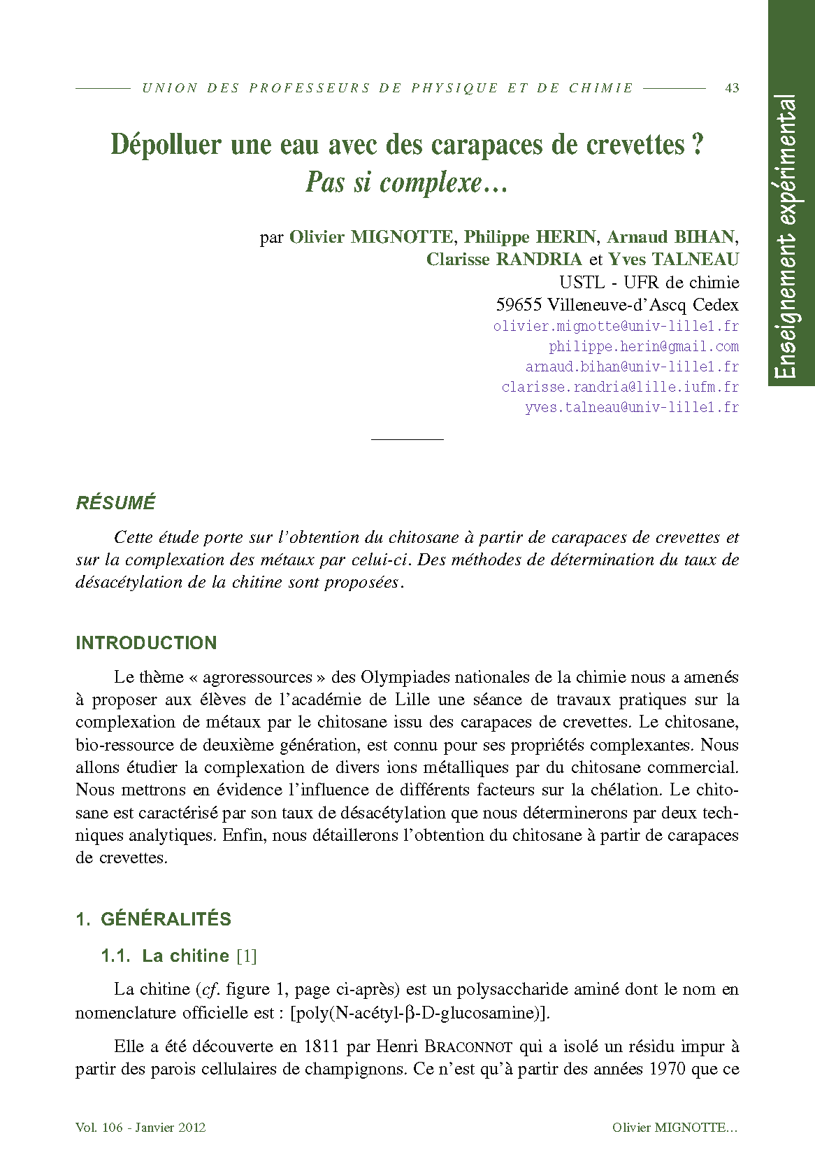 eau, chitosane, complexe, spectrophotométrie UV et IR, acétalisation, déprotection de fonction