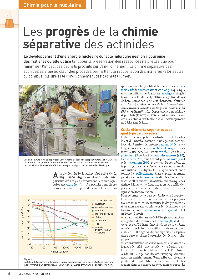 cycle du combustible, énergie nucléaire, reyclage, chimie séparative