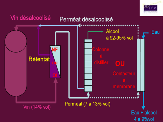 Le vin est obtenu à partir de jus de raisins issus des vendanges et contient des sucres qui, par fermentation réalisée par des levures, produisent de l’alcool. Le « vin sans alcool » officiellement appelé « boisson à base de vin désalcoolisé » est un type de vin fabriqué de manière à ne contenir que de très faibles taux d’alcool. Il ne faut pas le confondre avec le jus de raisin qui est une boisson non fermentée ! Dans L’Union européenne la législation fixe à 7% (i) le taux maximum d’alcool pour avoir ce label. Pour réduire le taux d’alcool, on peut d’abord utiliser des cépages contenant moins de sucre, comme le gewürztraminer ou le muscat pour les raisins blancs, et la syrah ou le merlot pour les vins rouges. On peut aussi utiliser des levures conduisant à des vins moins riches en alcool. Enfin, on peut aussi enlever une partie de l’alcool du vin, et pour cela trois grandes méthodes sont actuellement utilisées.
