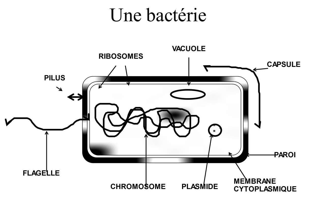 L'objectif de la bactérie [1], qui est un procaryote donc dépourvue de noyau (fig. 1), est de se multiplier et « d'occuper le terrain ». C'est d'ailleurs pourquoi de nombreux antibactériens sont produits par des microorganismes, qui éliminent ainsi les concurrents pour être les seuls à disposer des ressources nutritives [2].
