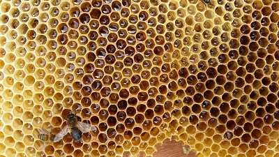 Le miel (3)(4) est une substance sucrée élaborée par les abeilles à miel à partir du nectar (i). L'élaboration du miel commence dans le jabot de l'ouvrière, pendant son vol de retour vers la ruche. L'enzyme invertase (ii) présente dans le jabot, catalyse l'hydrolyse du saccharose qui donne du glucose et du fructose (fig. 1). Arrivée dans la ruche, la butineuse régurgite le nectar à une receveuse, qui le régurgitera et le ré-ingurgitera en le mêlant à de la salive et des sucs digestifs. Il est alors stocké dans les alvéoles et déshydraté par la ventilation assurée par certaines abeilles. Il arrive à maturité lorsque la concentration en eau est inférieure à 18 %, et sa durée de conservation est alors extrêmement longue. Pour produire 500 g de miel, les abeilles doivent effectuer plus de 17 300 voyages, visiter 8,7 millions de fleurs, rapporter 2 kg de nectar, le tout représentant plus de 7 200 heures de travail. Elles l'entreposent dans la ruche et s'en nourrissent tout au long de l'année, en particulier lors de périodes climatiques défavorables.
