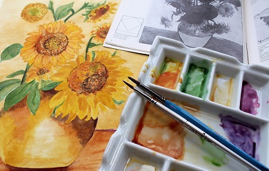 Dans la peinture à l’eau le liant a été d’abord de l’eau à laquelle on ajoutait de la gomme arabique (molécules de sucres associées solubles dans l’eau) pour obtenir des aquarelles ou des gouaches selon la quantité de gomme ajoutée. Puis, à partir du XVe siècle, on a ajouté à l’eau du jaune d’œuf. Ce dernier renferme 30% de lécithine qui est un phospholipide, molécule contenant des chaînes hydrocarbonées apolaires lipophiles avec des extrémités chargées hydrophiles ; on obtient une émulsion dans laquelle les particules de pigments (composé ioniques) sont alors dispersées sans pouvoir s’associer en agglomérats qui seraient inutilisables pour la peinture. On peut remplacer le jaune d’œuf par de la glycérine [1a].