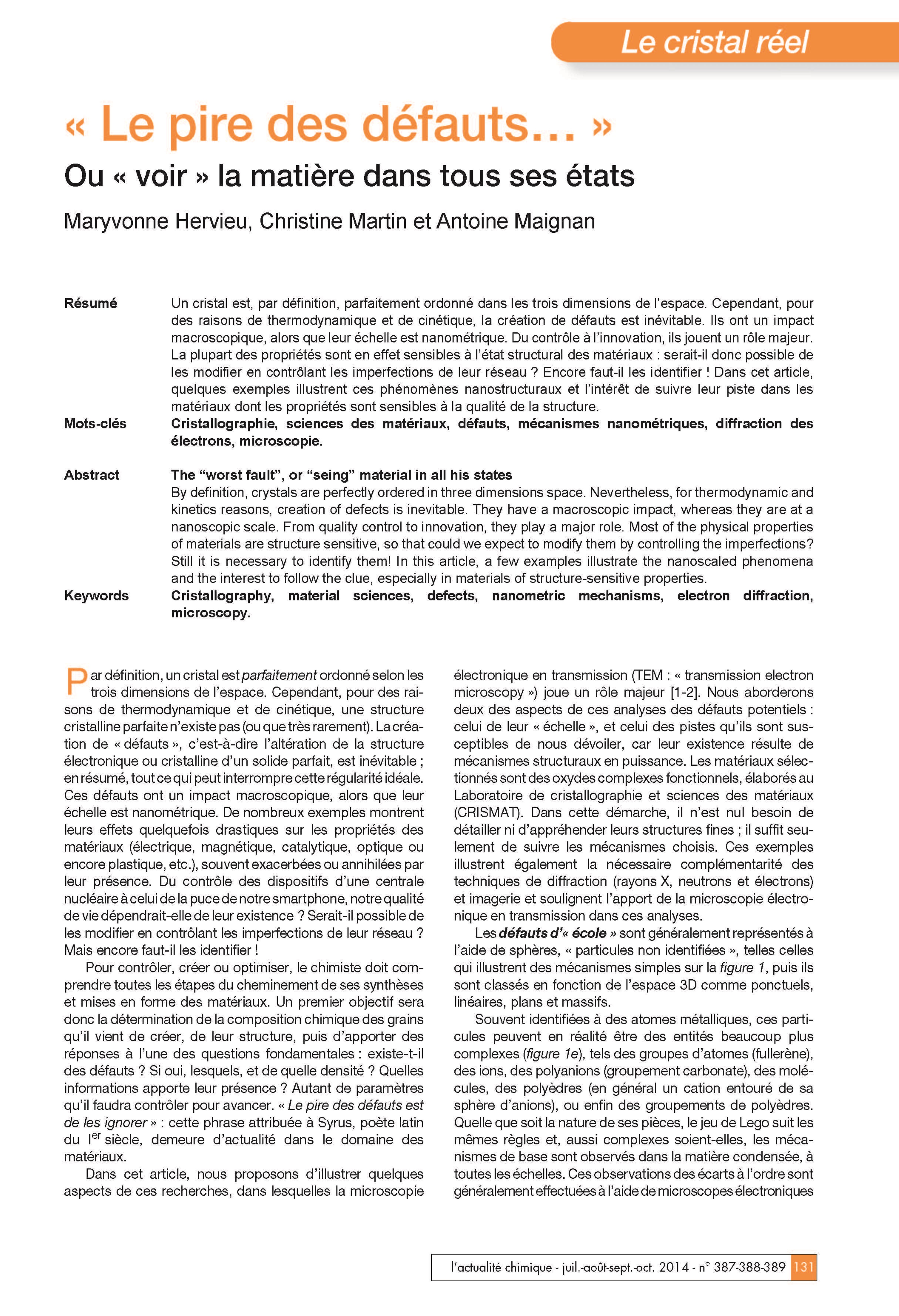 classe des défauts, pérovskites simple ordonnée, cuprates supraconducteurs, aluminates et silico-aluminates, ferrite de lutécium, mécanismes nanométriques, diffraction des électrons