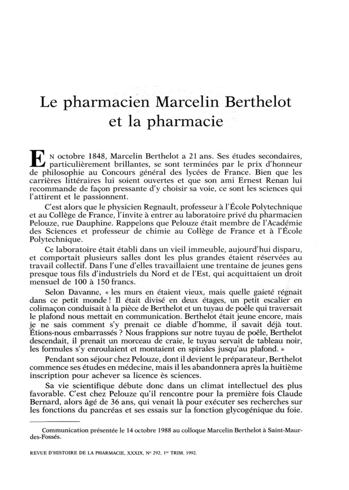 École de Pharmacie, Collège de France, liquéfaction des gaz, polyols, synthèse des corps gras, obtention de l'acétylène